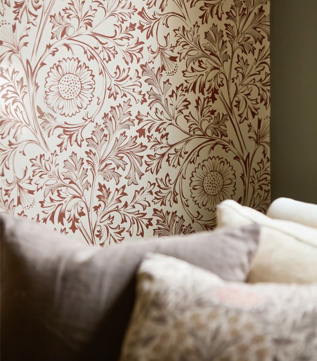 From The Huntington’s remarkable library of documents in California, come handcrafted and unmistakably original designs with the familiarity of Morris’s unmistakable hand, translated across wallpapers, borders, fabrics, weaves, and embroideries by our talented studio artists.