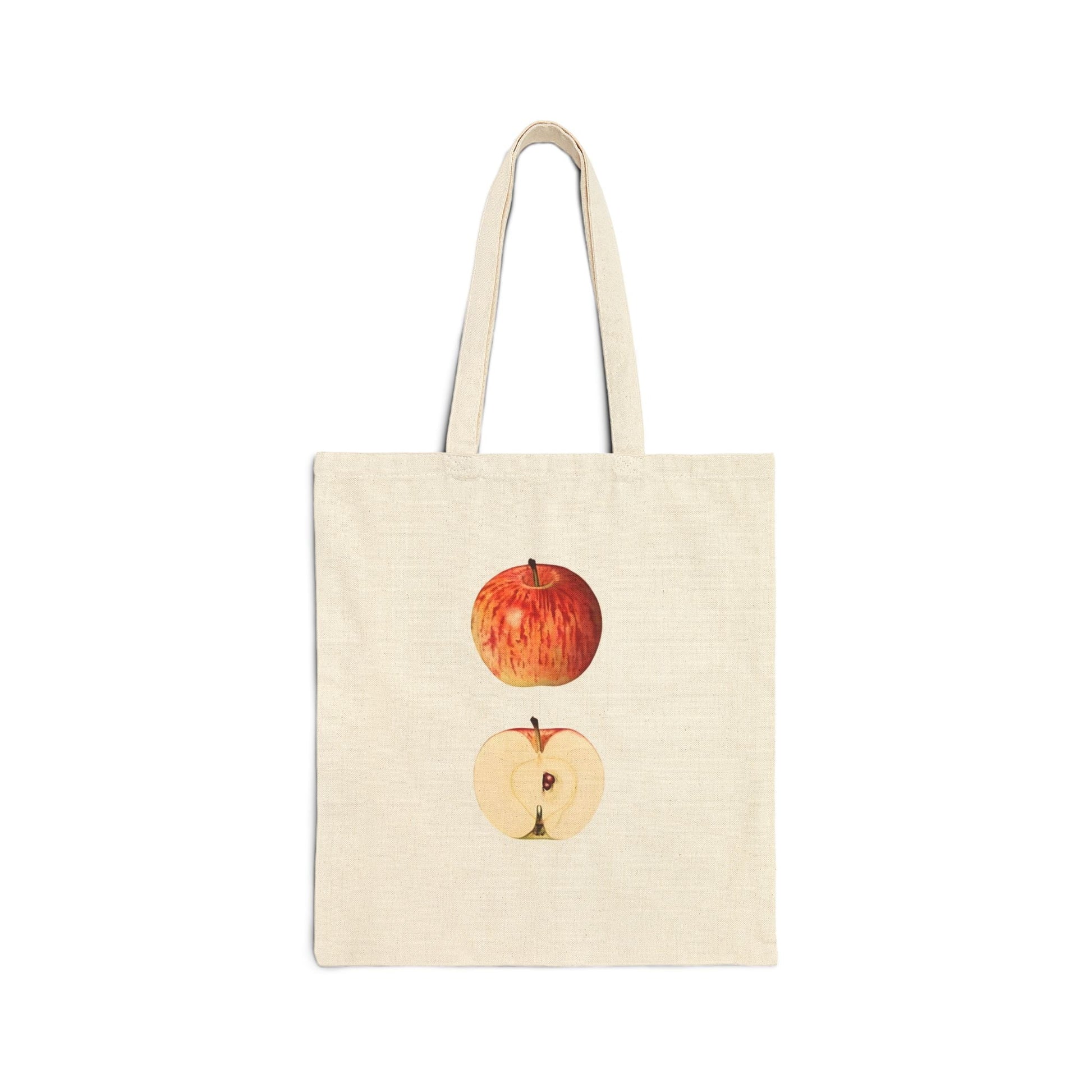 Forget flimsy plastic bags that crumble under pressure. Crafted from 100% heavy cotton canvas, this bag can handle everything from a spontaneous farmer's market haul to your stack of unread novels. It features two delightful apple graphics on both sides, so you get two great looks for the price of one. We call that maximum visual return for minimum effort.