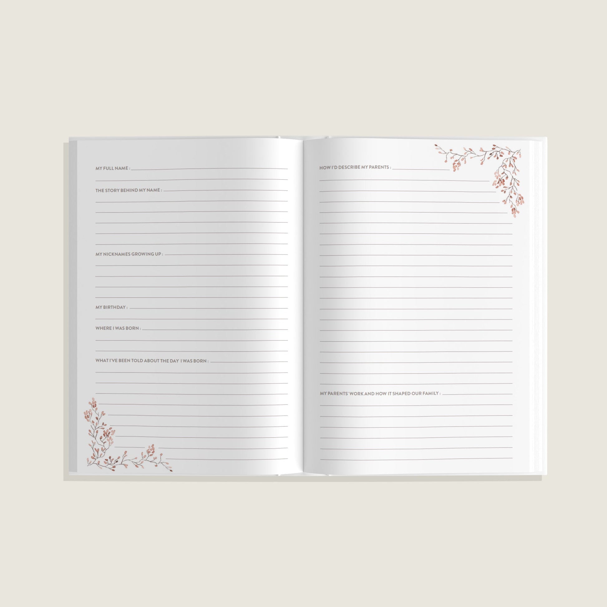 The thoughtfully curated writing prompts guide the subject through a complete life review, transforming private memories into a permanent, sharable resource:
