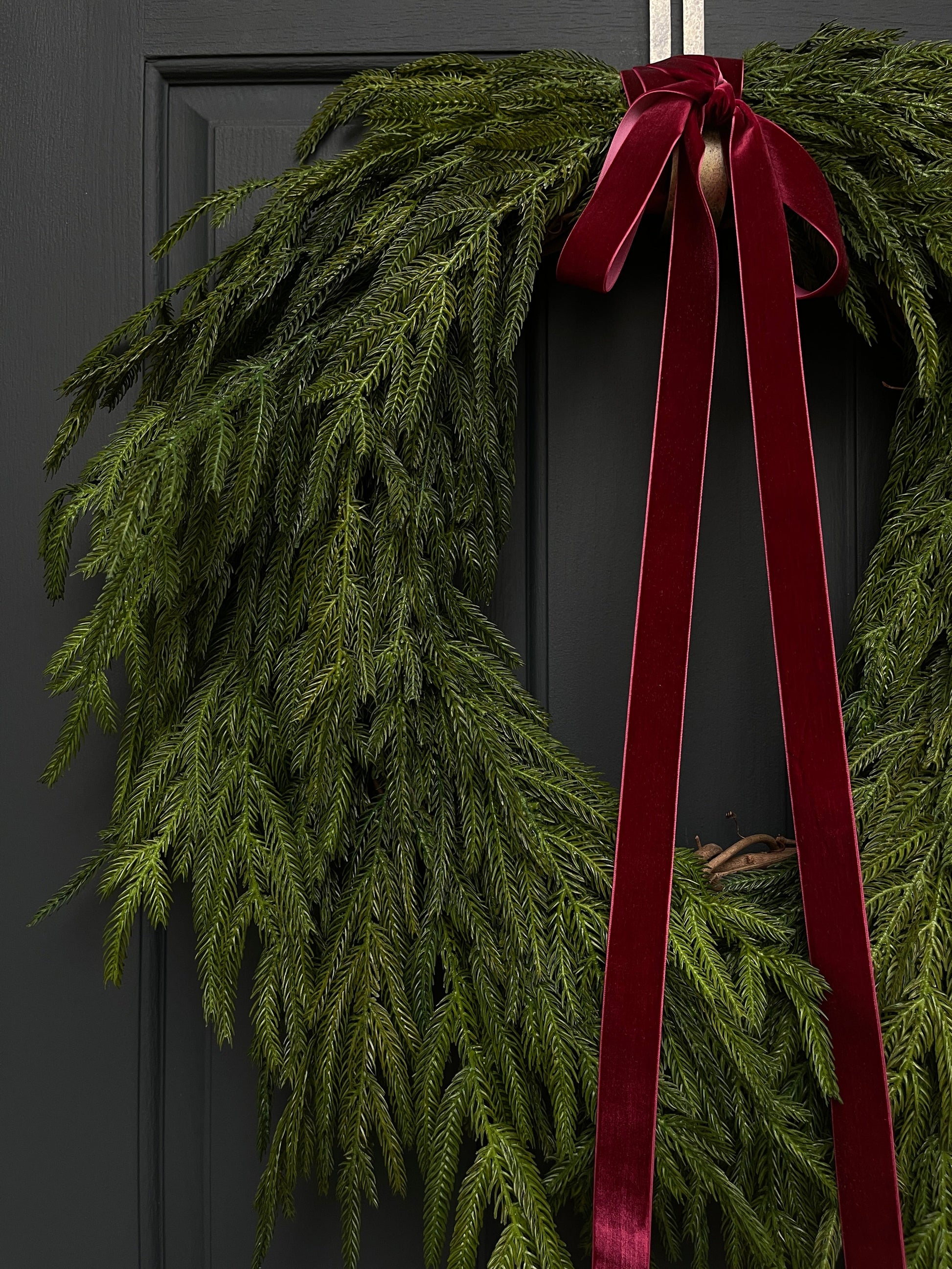 The Norfolk Pine Wreath - Dior Bow is your choice for immediate visual impact, instantly elevating your holiday home with unforgettable distinction. We deliver curated, classic sophistication that lasts well beyond the season with zero fuss.