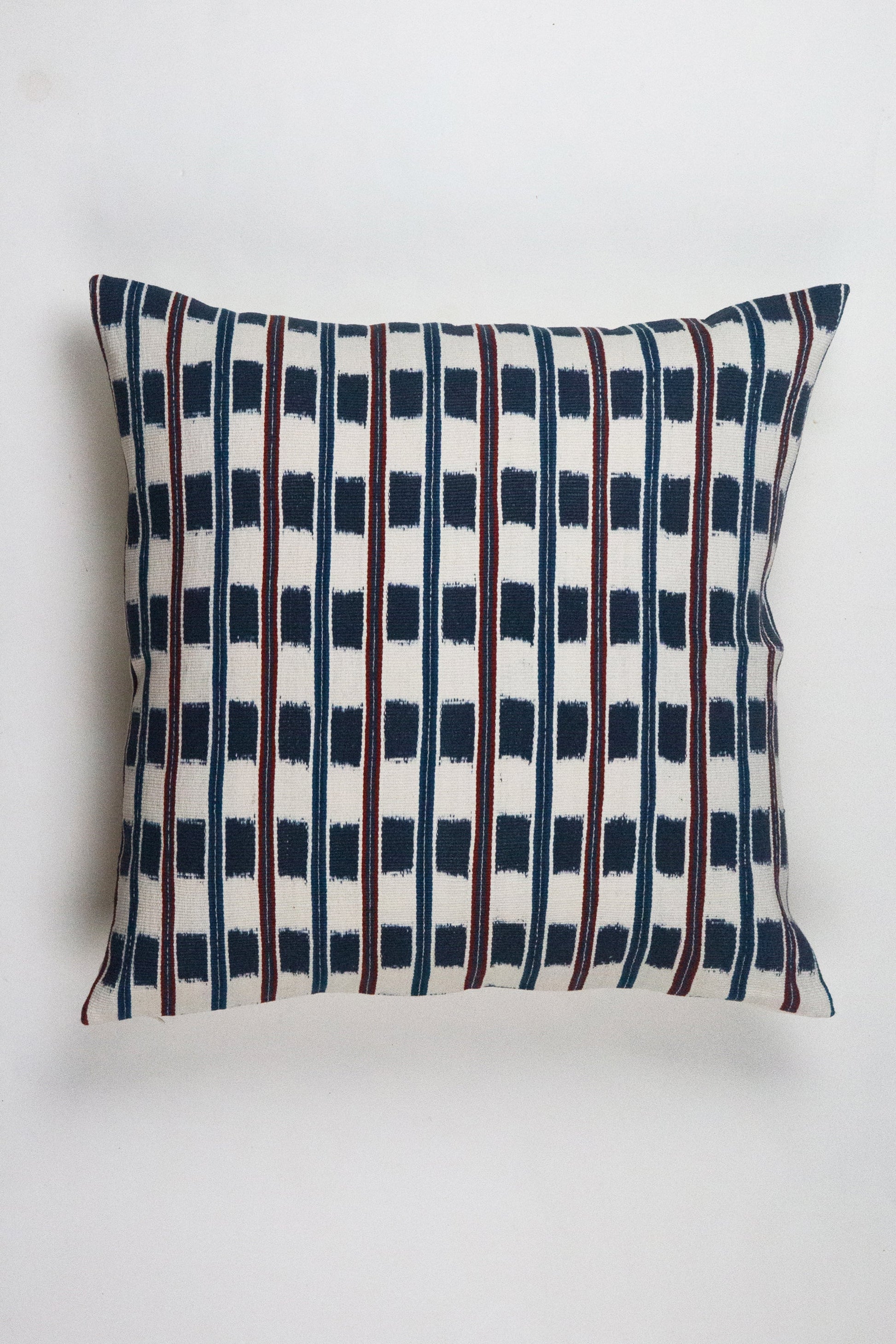 This pillow is a highly specific artifact of high-integrity production, distinguished by its unique provenance. The textile was meticulously woven by an artisan using a back-strap loom, a time-honored, complex method of weaving.